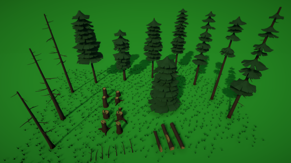 This pack contains differents pines and a bonus model of grass. You will find the No LODs version and the LOD's version.