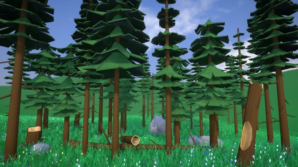 The LOD0 for the logs/trunk has an average of 117 vertices / 107 faces